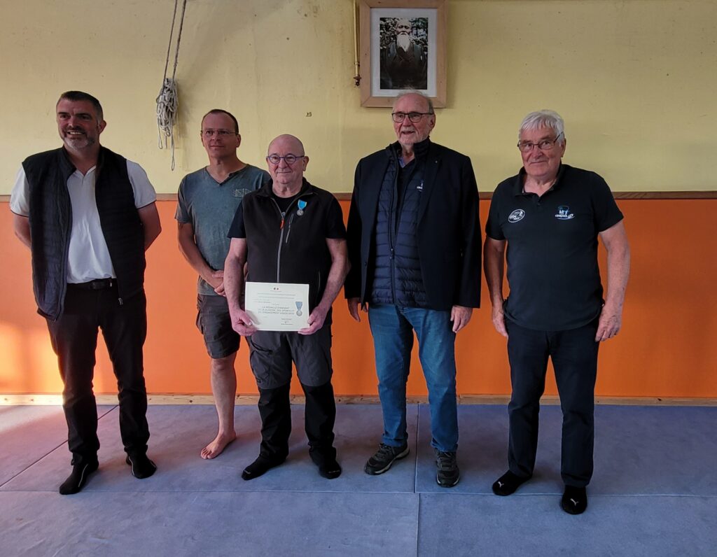 Ce mardi, à la suite de l’Assemblée Générale normale, maître Gilles a eu la surprise de recevoir la médaille de bronze de la jeunesse et des sports, après plus de 40 ans de bénévolat dans l’aïkido.